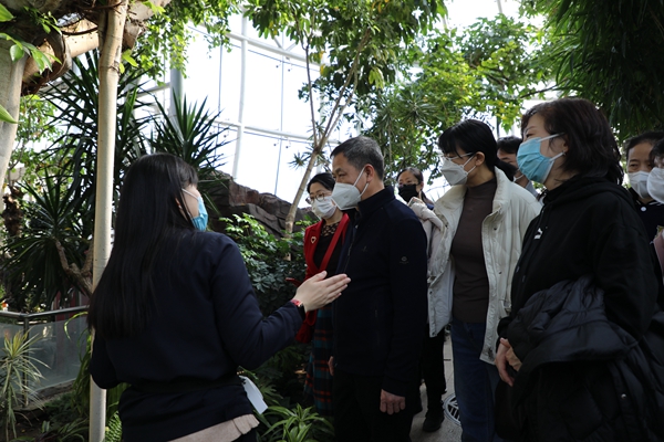 随后,代表们乘大巴车来到国家植物园。国家植物园,是在中国科学院植物研究所(南园)和北京市植物园(北园)现有条件的基础上扩容增效整合而成,园内不仅植物种类丰富,还有众多人文景观。大家走进卧佛寺,边听取讲解边欣赏寺院建筑技术和彩画艺术,感受浓厚的文化氛围。在热带植物展览温室,代表们近距离感受植物多样性之美,并考察了珍惜濒危植物和植物迁地保护情况。最后来到曹雪芹纪念馆,参观了西山故里图文资料展,深入了解曹雪芹着书的历史环境和三山五园文化。
