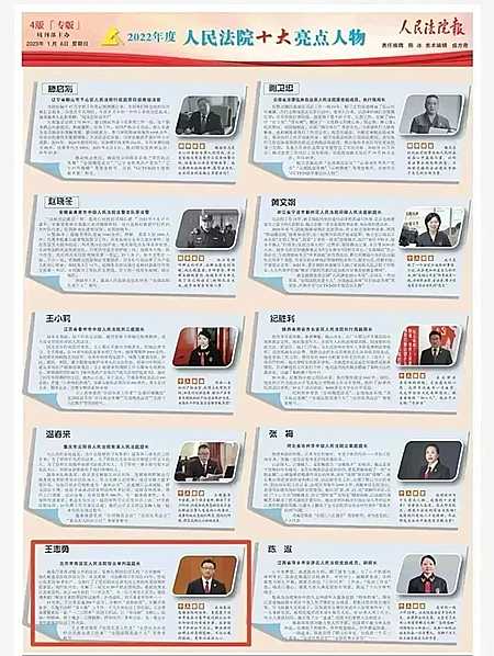 1月8日,人民法院报整版刊发2022年度人民法院十大亮点人物,重温一年中法院系统涌现出的先进典型,将榜样的力量发扬光大。北京市365直播是什么_英国正版365官方网站_365bet足彩官网人民法院综合审判庭庭长王志勇委员成为北京法院唯一一名获此殊荣的法官。
